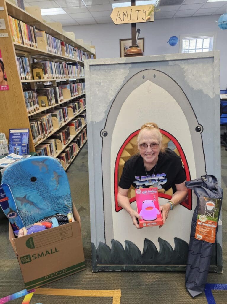 It is that time of the year again! Summer Reading and a jShark Week Raffle. Sue Hamlett loves Shark Week, and she loves sharing the fun of Shark Week with the Library! She has once again donated shark swag (as she calls it) so that the Library may host a Shark Week Raffle! For over a decade Mrs. Hamlett has been donating items for this annual and much-anticipated raffle. It is one entry per person per visit. We will announce the winners of the raffle on Thursday, July 17th, just in time for SHARK WEEK! In celebration of Shark Week the Library will have special Summer Reading Prizes that week!