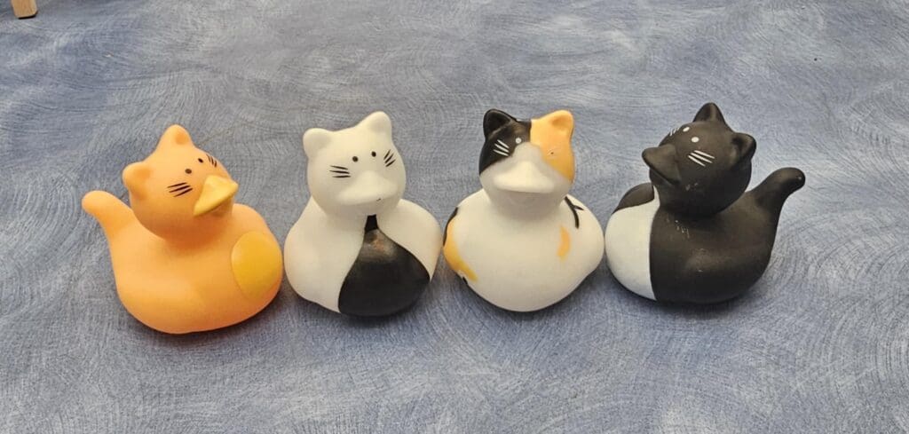 Have you spotted Penny or a member of her posse yet? The Library staff has started hiding kitty-ducks around town! Penelope (aka Penny) and her posse of kitties (cat shaped rubber ducks) are cats about town! Penny the Library’s orange kitty mascot along with her clowder of cats are hiding around town. If you find Penny or a member of her posse just return them to the Library and pick a Penny Pincher prize! All ages are welcome to become a member of the Penny Pinchers! You are allowed one prize per person while supplies or kitty-ducks last. We have purchased only so many kitty-ducks, and once they are gone and not returned to the Library the program will be over. If you find a kitty-duck keep the game going by returning it to the Library for prize! All returned kitty-ducks will be released back into the “wild” to be found and returned again, so more prizes can be won. These kitty-ducks will not be found inside stores or other buildings, but outside, so please be respectful when going on your kitty-duck hunt.
