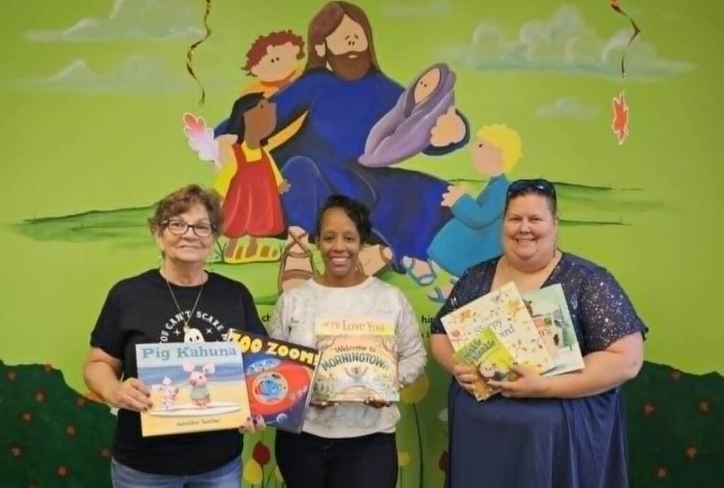 Photo Left to Right Lisa Dawson, Leslie Galloway (Grace Hill’s Day Care Director) and Cindy Scheu (Library Director). Cindy from the J. Robert Jamerson Memorial Library dropped off over a dozen new children’s book to Grace Hill’s Day Care Center in memory and honor of William “Bill” Jamerson.